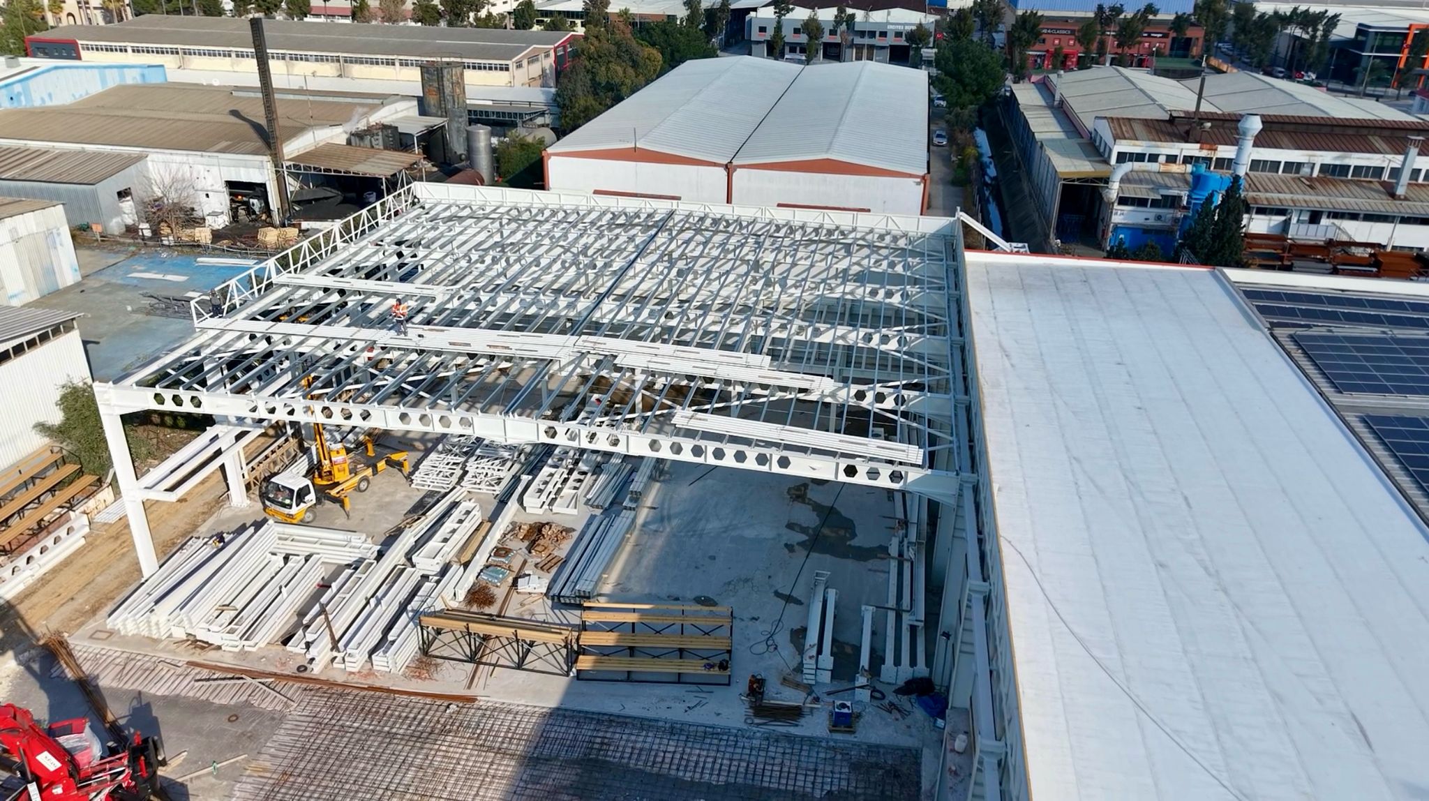 Yapısal iskelet sistemi, sanayi yapıları için optimize edilmiş yüksek mukavemetli çelik konstrüksiyon teknolojisi kullanılarak inşa edilmiştir. Bu sistem, hem hızlı montaj avantajı sunmuş hem de yapının uzun ömürlü ve düşük bakım gerektiren bir form kazanmasını sağlamıştır.