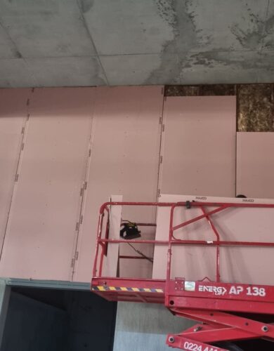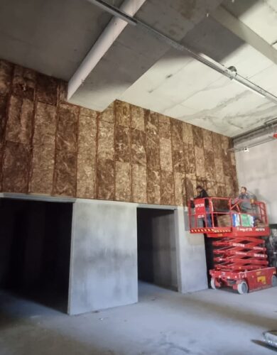 Tüm iç duvar yüzeylerinde, yüksek performanslı ses ve ısı yalıtımına sahip kaplama sistemleri uygulanarak hem enerji verimliliği artırılmış hem de iç ortam konforu optimize edilmiştir. Bu uygulamalar, tesisin akustik kontrol ve iklimlendirme sistemleriyle entegre çalışacak şekilde detaylandırılmıştır.