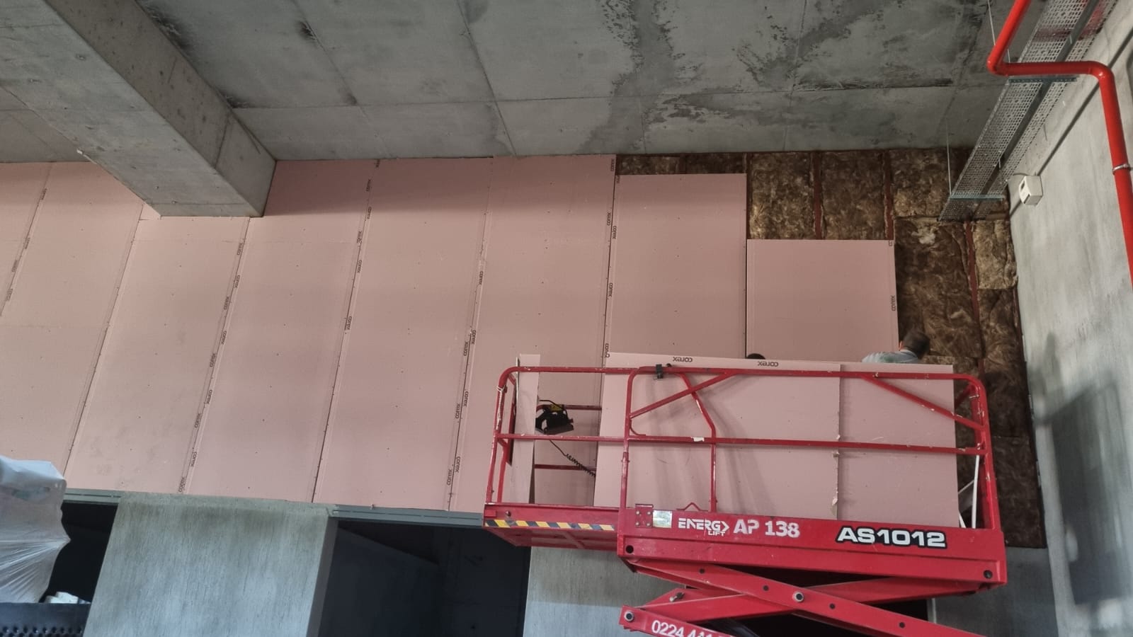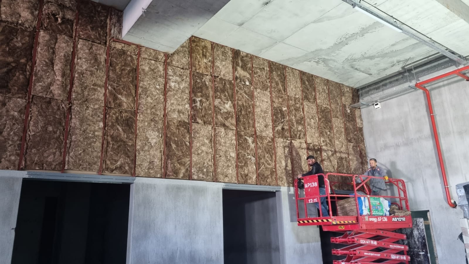 Tüm iç duvar yüzeylerinde, yüksek performanslı ses ve ısı yalıtımına sahip kaplama sistemleri uygulanarak hem enerji verimliliği artırılmış hem de iç ortam konforu optimize edilmiştir. Bu uygulamalar, tesisin akustik kontrol ve iklimlendirme sistemleriyle entegre çalışacak şekilde detaylandırılmıştır.